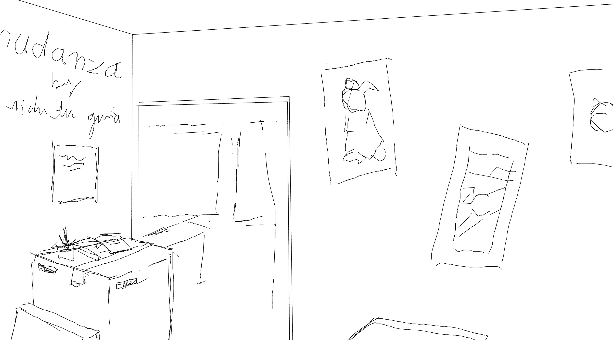 The work on the walls will be printmaking works created within the last two years, hung by magnetic pins. These works will be hung tilted and at different heights, seeking to emulate walls full of posters.